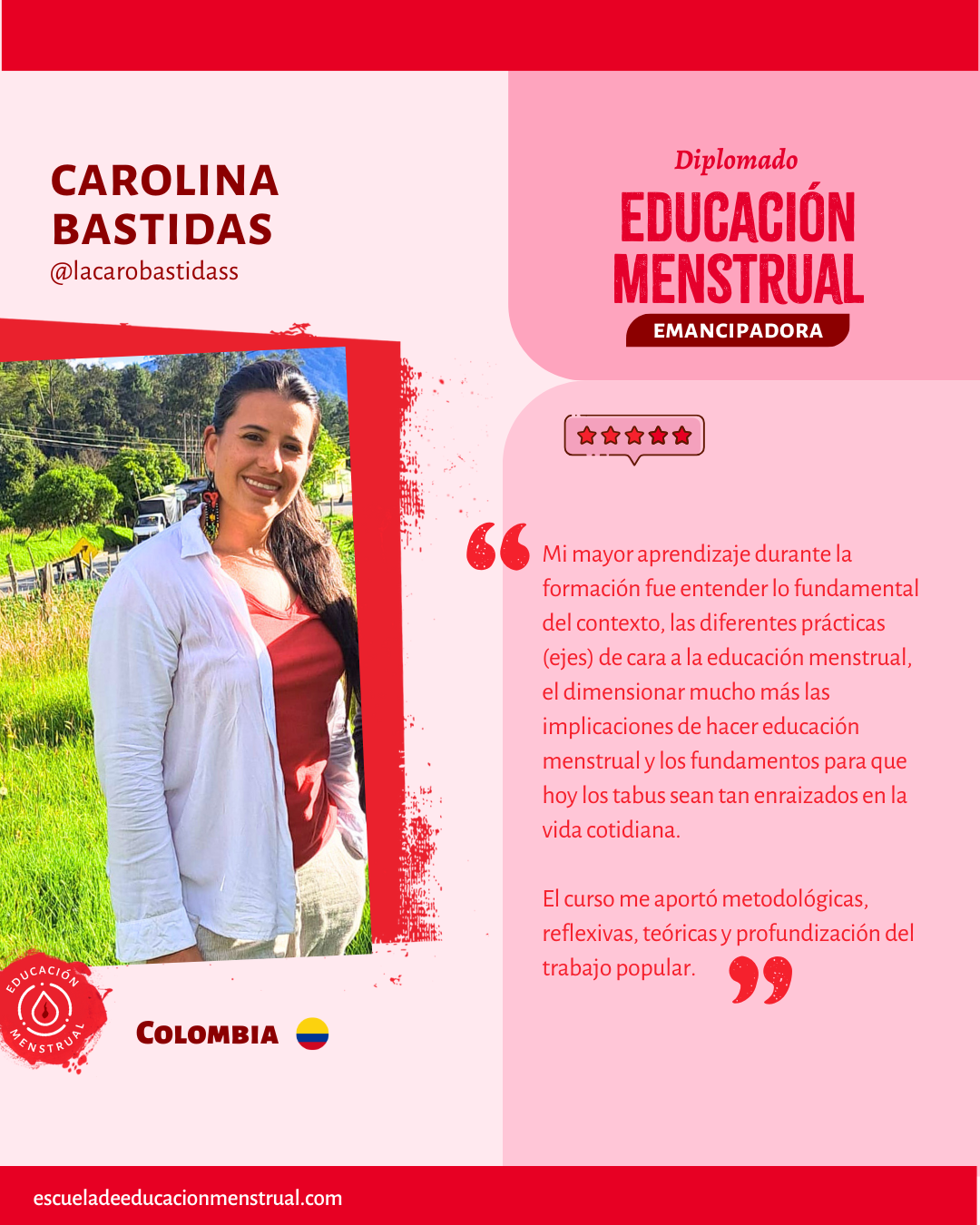 La Escuela de Educación Menstrual Emancipadas, fundada en 2020 por Carolina Ramírez, es una red de proyectos autónomos que buscan el autosostenimiento mediante la oferta de educación no formal. Nuestro trabajo se centra en tres pilares: formación académica, espacios abiertos de debate y un sello editorial propio.
